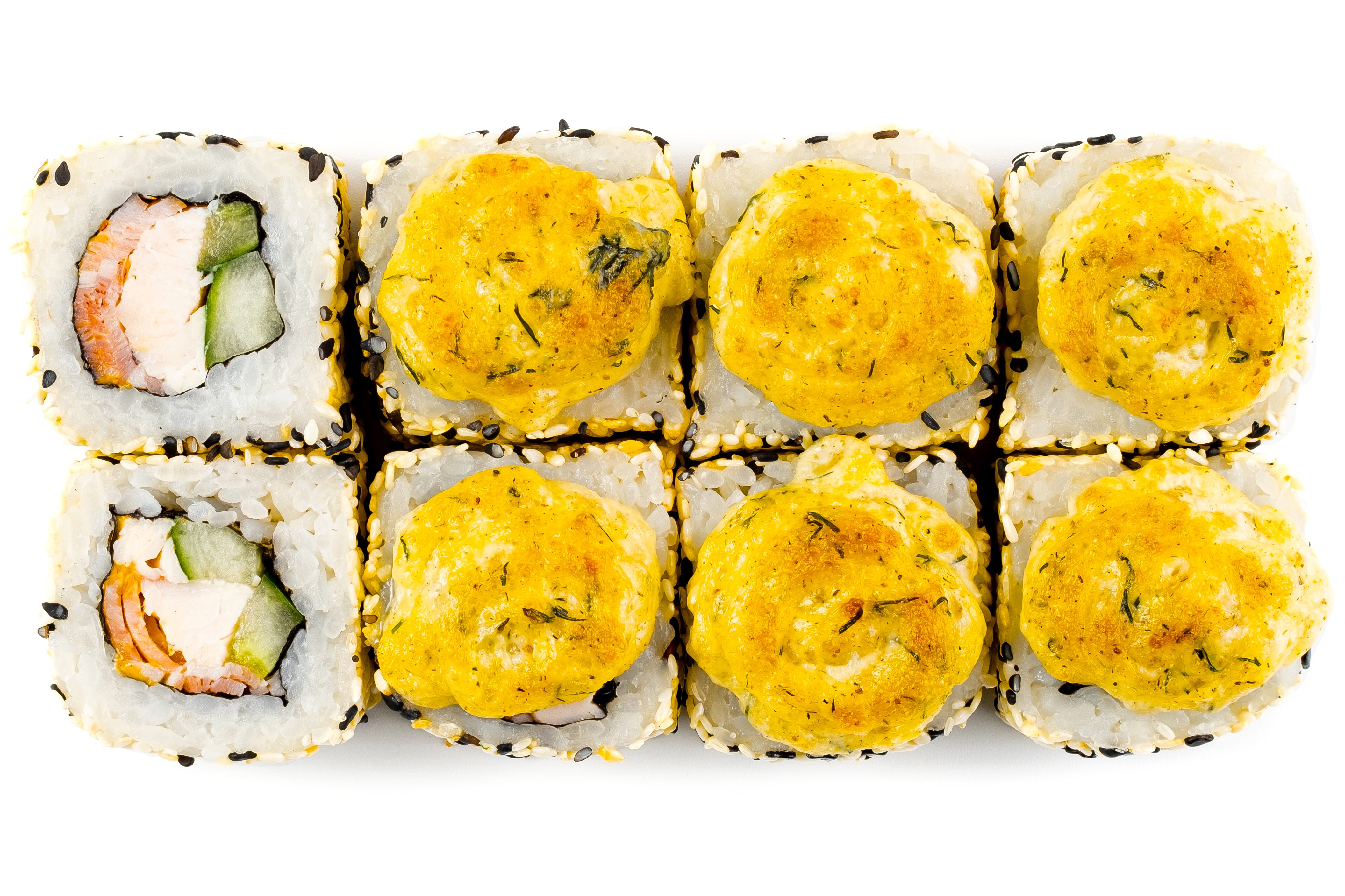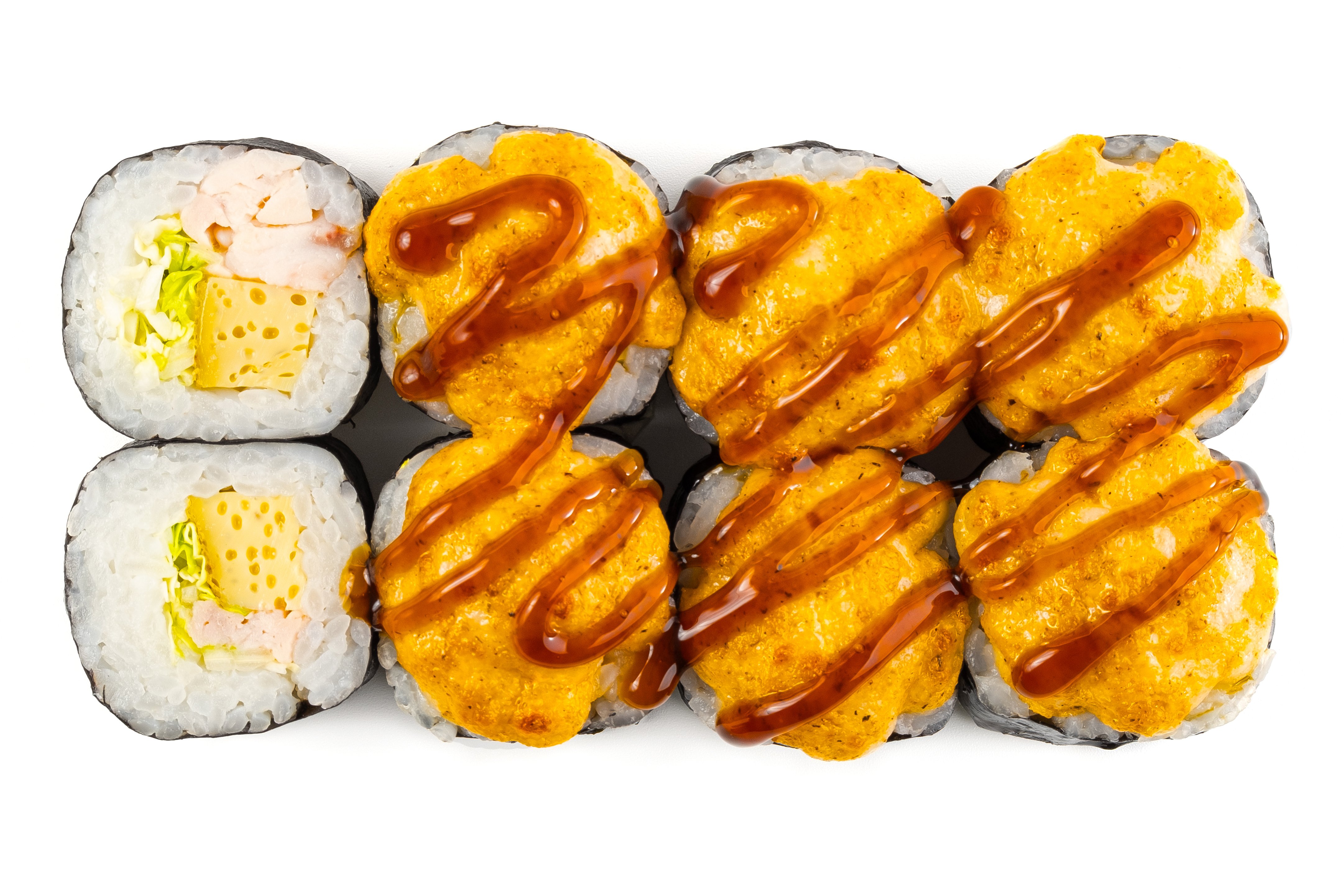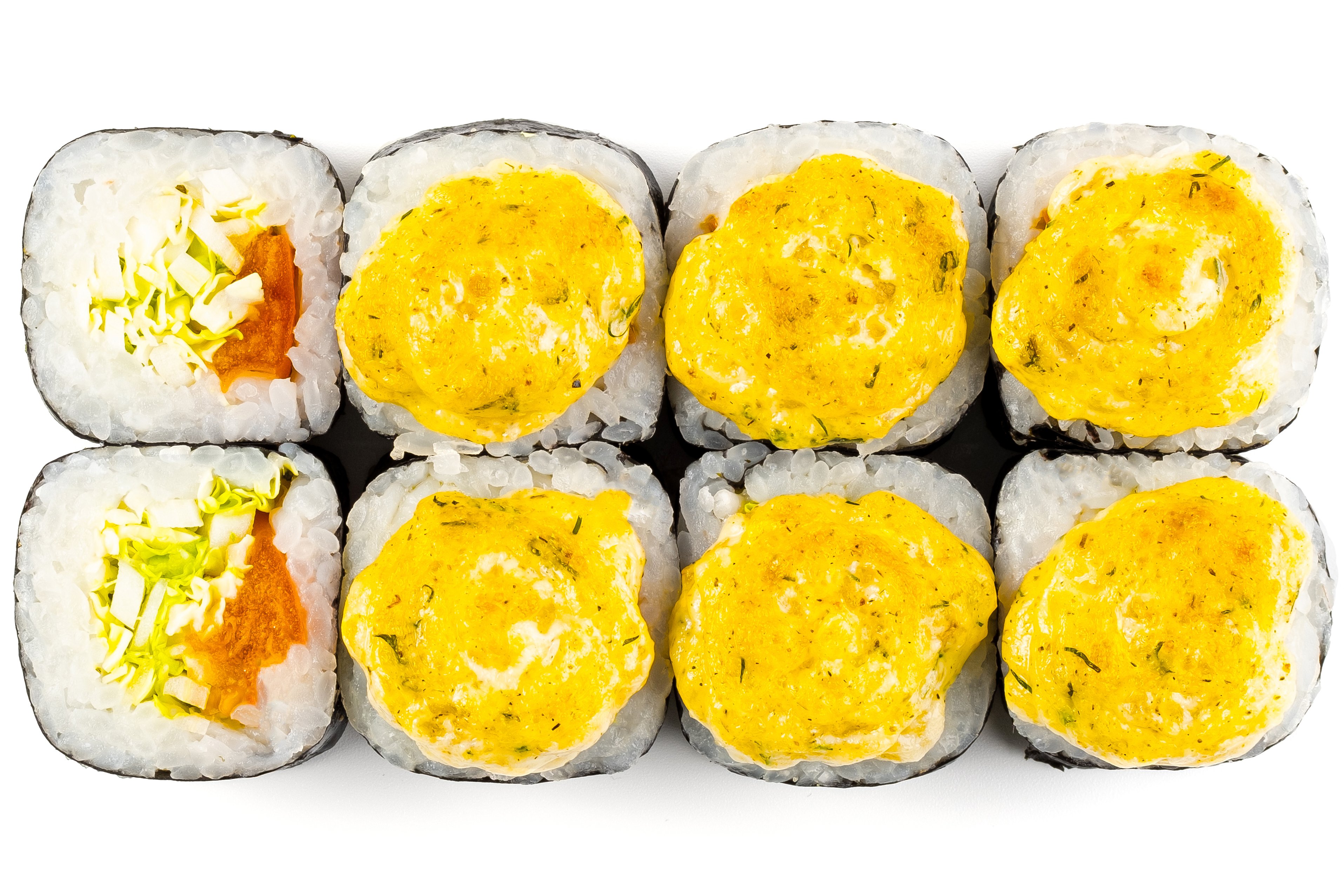 Курица, Нори, Пекинская капуста, Рис, Омлет Тамага, Сырная шапка спайси,